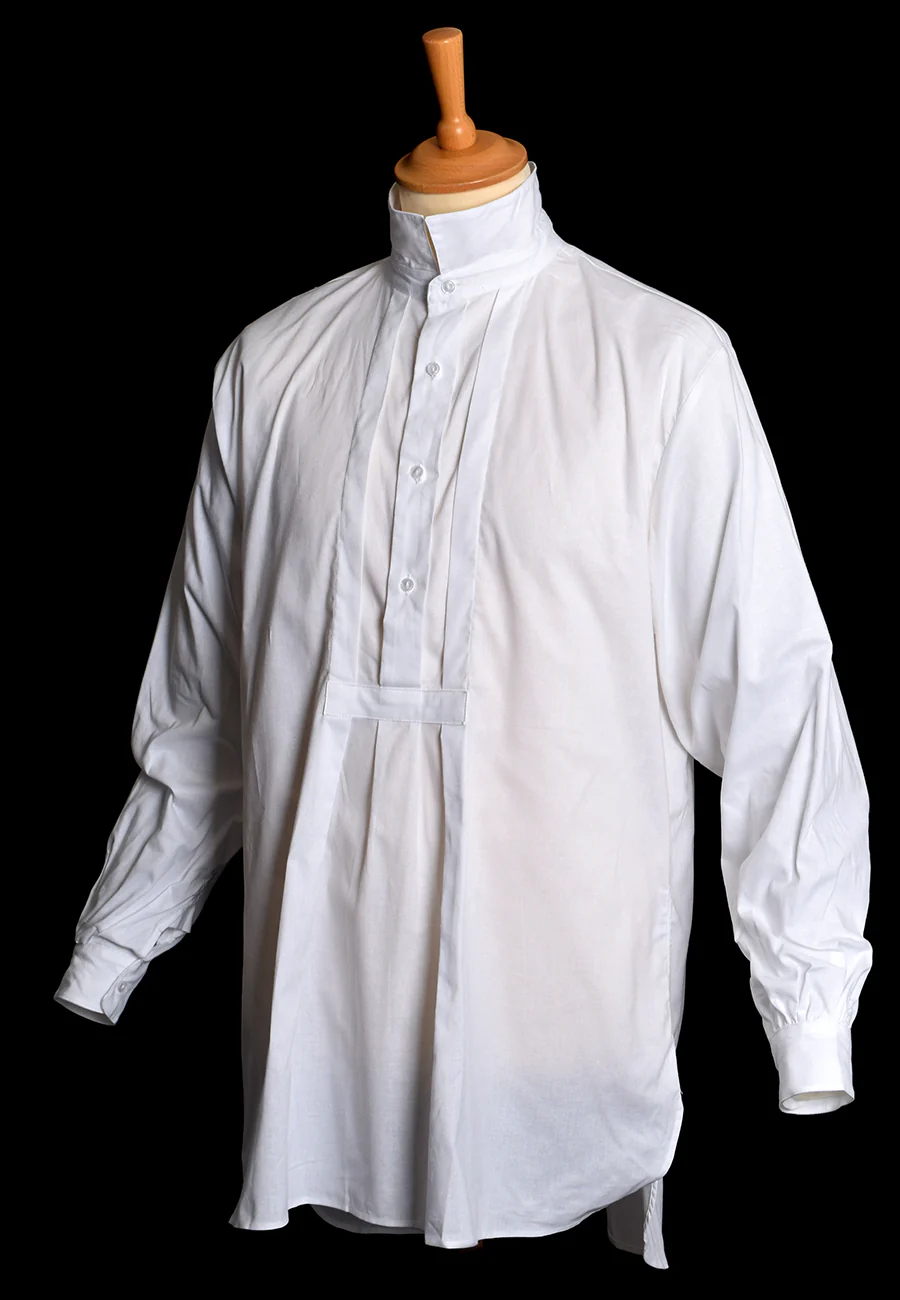 They are not as formal as the neckband shirts with starched collars as they have attached soft turndown collars, so can be worn with a tie or neckerchief.